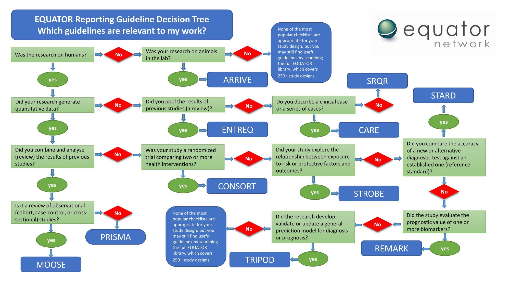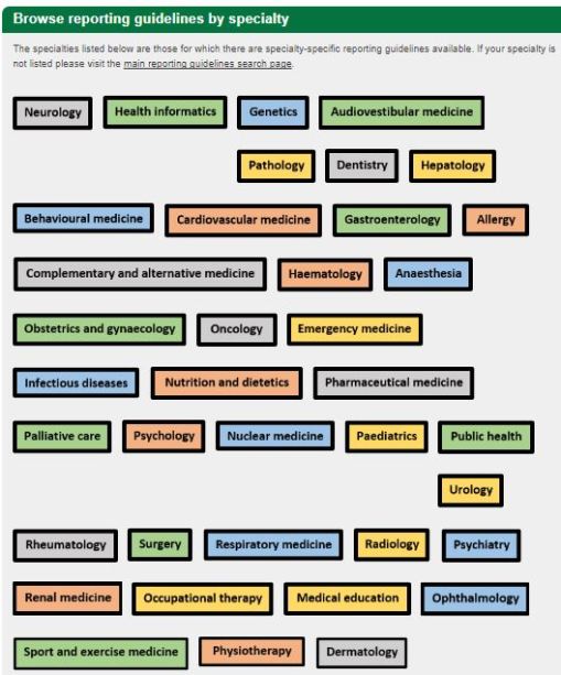 Equator network nos ofrece la compilación de las guías de reporte que se utilizan para escribir artículos científicos con fines de publicación.  También pueden aplicarse desde la planificación del estudio o durante la revisión editorial para evaluar la calidad del reporte.