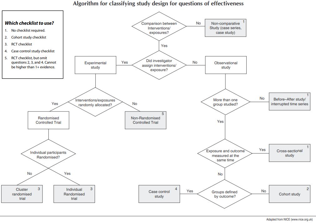 Comparto este flujorgrama muy práctico, lo pueden descargar en pdf en http://www.sign.ac.uk/assets/study_design.pdf